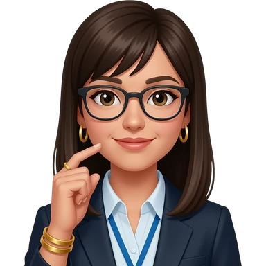chaos, dark brown straight hair, glasses, marketing, recruiting, gold bracelets and gold earrings emoji | AI Emoji Generator