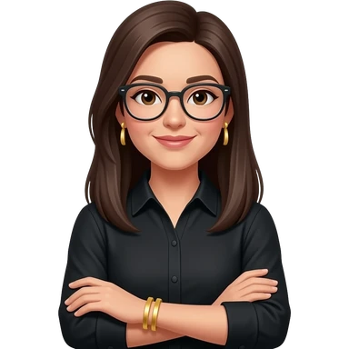 dark brown straight hair, glasses, marketing, recruiting, gold bracelets and gold earrings emoji