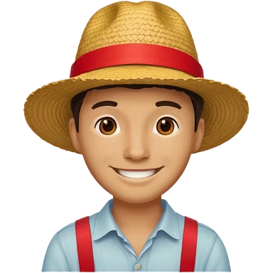 Un personnage avec la peau beige une cicatrice sous l'oeil des cheveux noirs en bataille et un chapeau de paille avec une bande rouge il arbore un grand sourire emoji