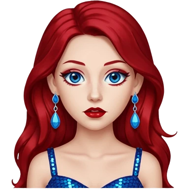 Chappell Roan (b.1998) with red long wavy hair, makeup, blue eyes emoji