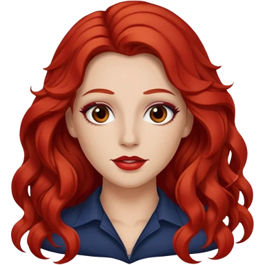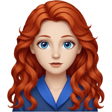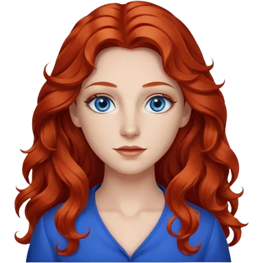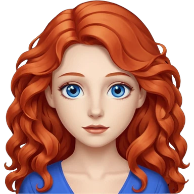 Chappell Roan (b.1998) with red long wavy hair, makeup, blue eyes emoji