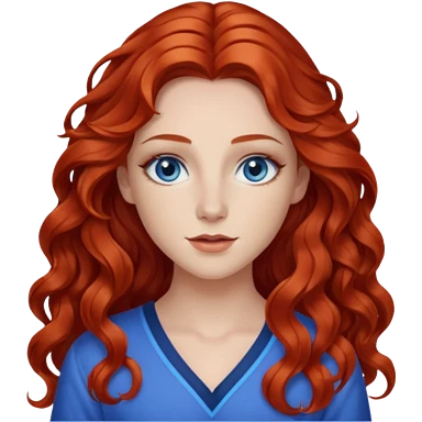 Chappell Roan with blue eyes and long dark red curly hair emoji