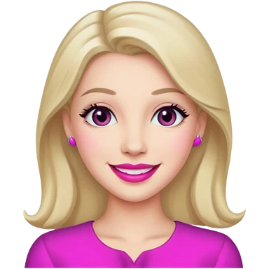 Chappell Roan long dark red curly hair, blue eyes, pink eyeshadow and lip, pink dress emoji