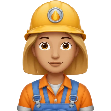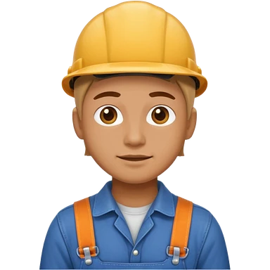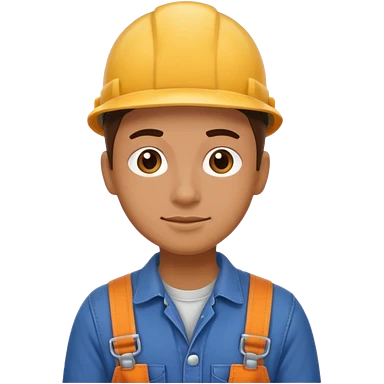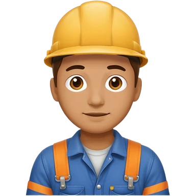 Create an emoji of a guy in work clothes (mechanic) with black hair, he is happy and showing his license on his hand emoji