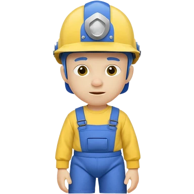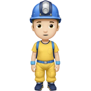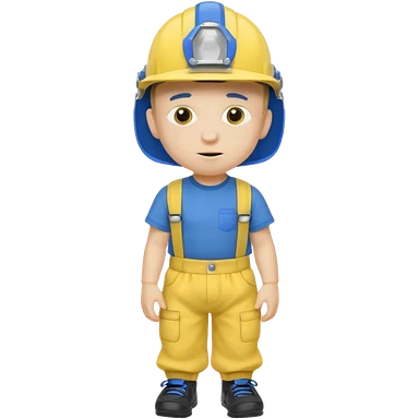 a character with a blue helmet,a pencil up his nose,a yellow shirt what says jeffy,and a nappy/diaper on the outside of hiv navy pants and black shoes emoji