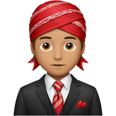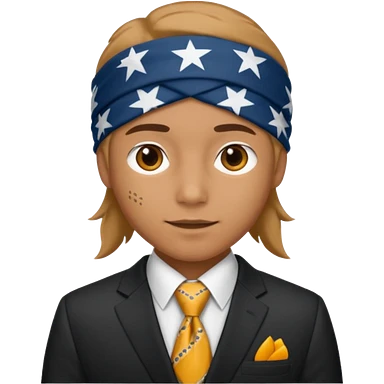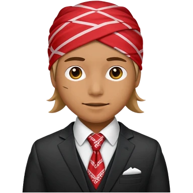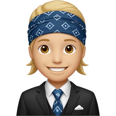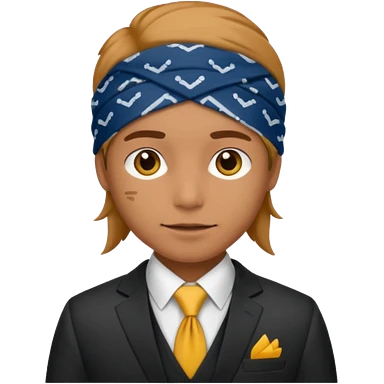 Character wearing yellow bandana and a suit emoji
