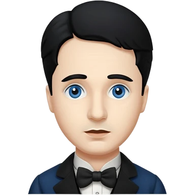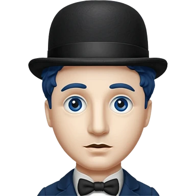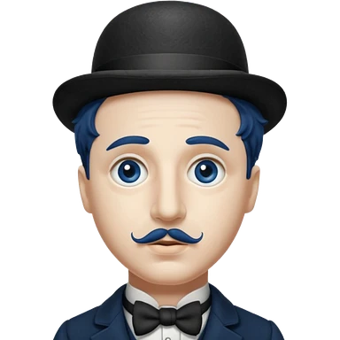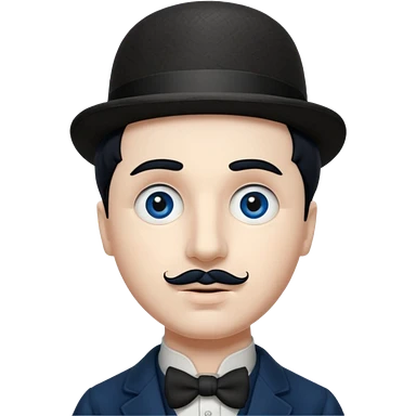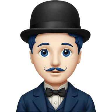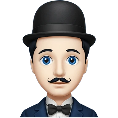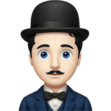 Charlie Chaplin with bowler hat, small mustache, suit, cane, and classic pose emoji