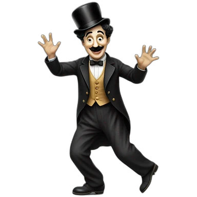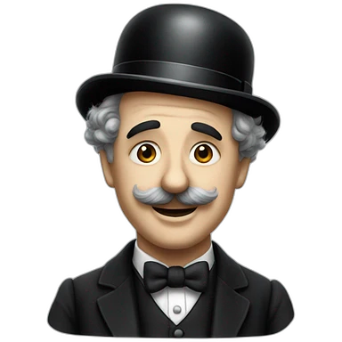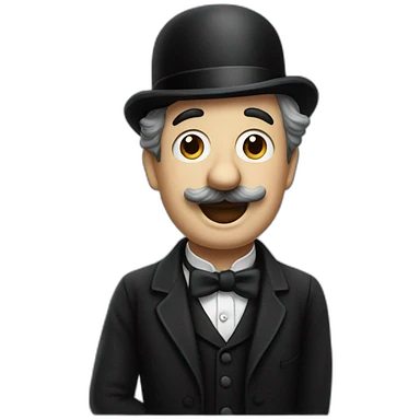 Charlie Chaplin with bowler hat, small mustache, suit, cane, and classic pose emoji
