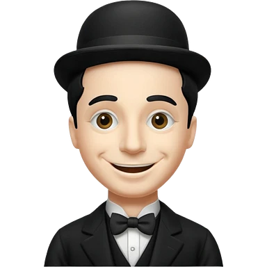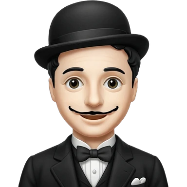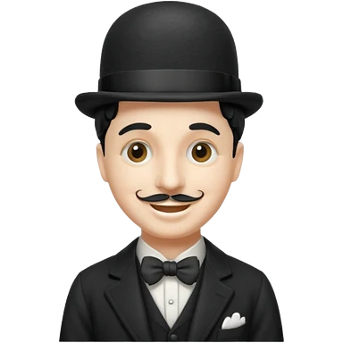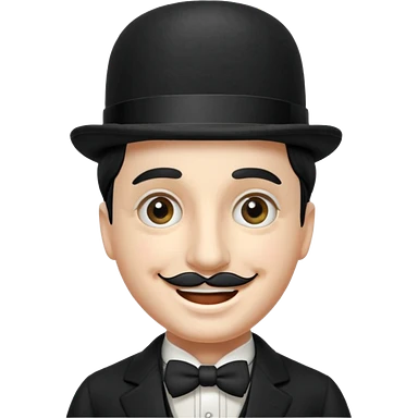 Charlie Chaplin with bowler hat, small mustache, suit, cane, and classic pose emoji