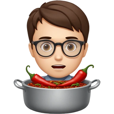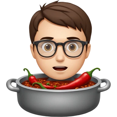 Charlie Kirk in a pot of chili emoji | AI Emoji Generator