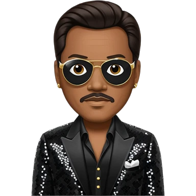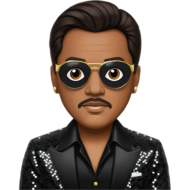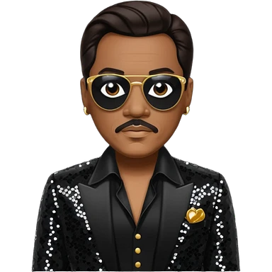 Charlie Wilson with dark brown hair, black sequin outfit emoji