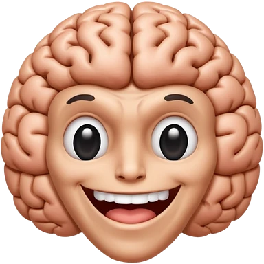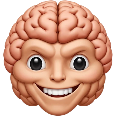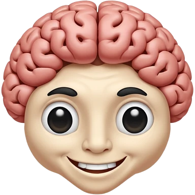 Un cerveau avec un immense sourire blanc, de beaux yeux noirs et des muscles emoji