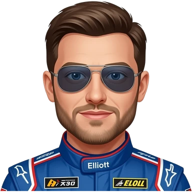 Chase elliott with facial hair wear aviator sunglasses and a blue racing suit emoji