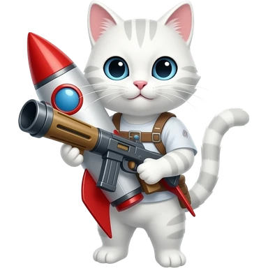 Chat blanc avec un lance roquette emoji