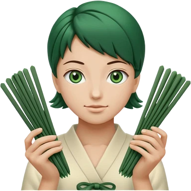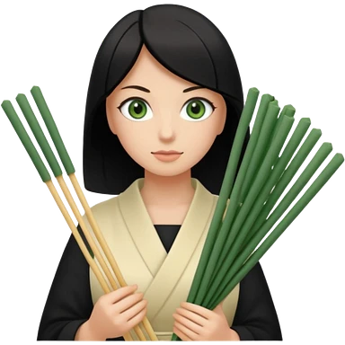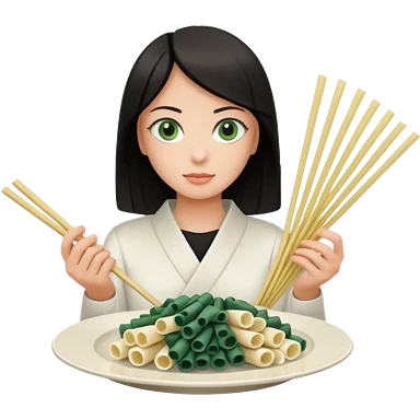 Noir et blanc avec des yeux verts et des pâtes en mikado emoji