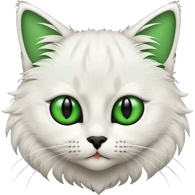 Chat 99% blanc, poil long, yeux verts, pointe des oreilles marron emoji