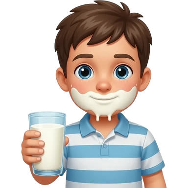Garçon avec du lait partout sur la bouche et un dans la main emoji