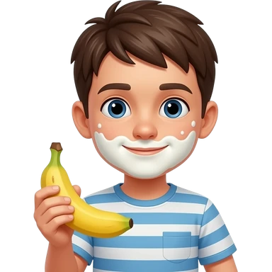Garçon avec du lait partout sur la bouche et une banane dans la main emoji