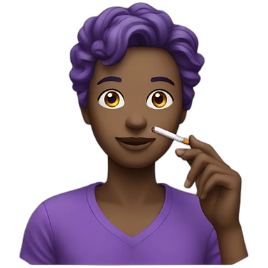 Chat violet avec des yeux noir avec des pupilles noir et un colier lune et ce chat crache du gaz rouge emoji