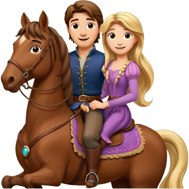 Rapunzel and Flynn Rider, riding on a horse emoji