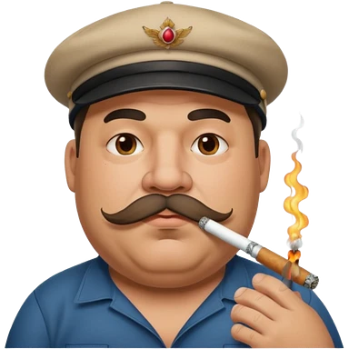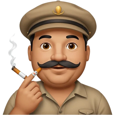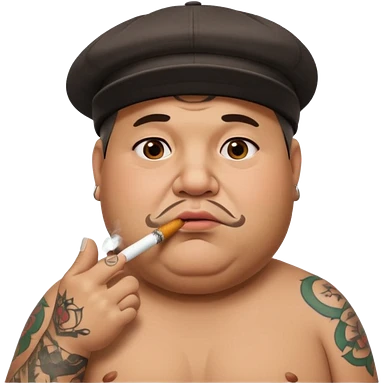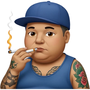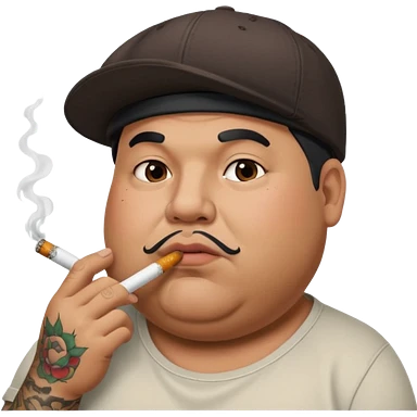 a fat father with a cap and tattoos, a cigarette in his mouth, and a mustache. emoji