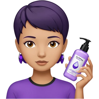 tan girl purple shirt with black hair & a pixie, doing her skin care emoji