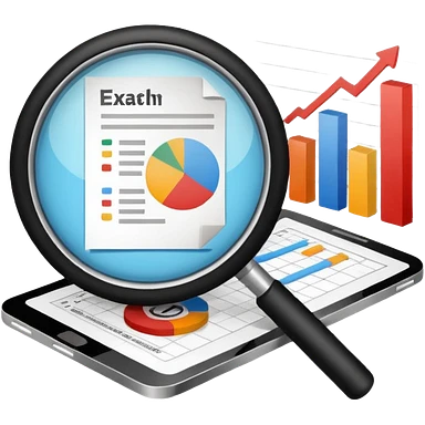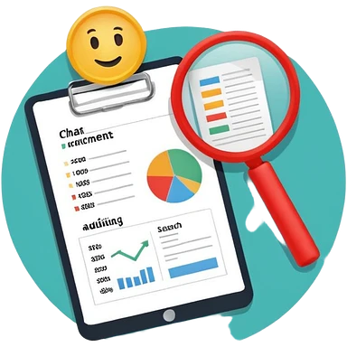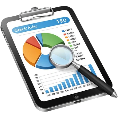 Checking and auditing estimate documents with search icon and infographic chart emoji | AI Emoji Generator