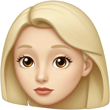 white skin, high cheekbone, brown hair girl with blue eyes, medium bust, long blow-out hair, baddie, middle part, sultry emoji