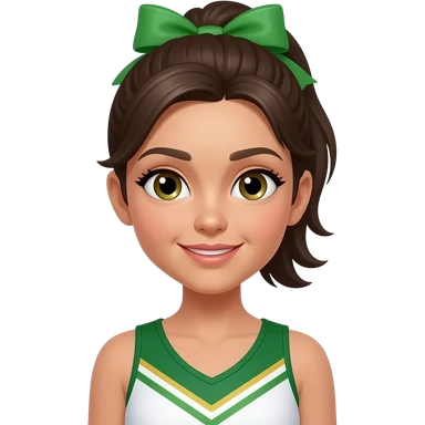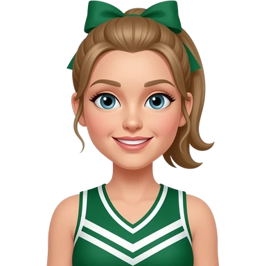 Brunette girl all star cheer uniform high ponytail with a bow emoji