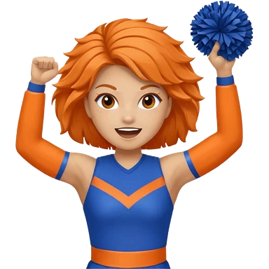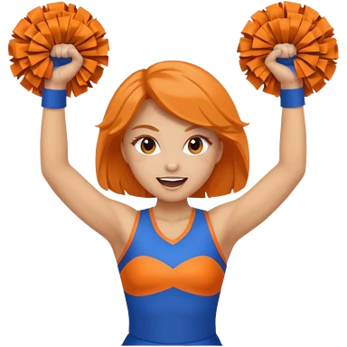 cheerleader within a circle of shades of orange and blue With her, Boom Boom, and cheering emoji