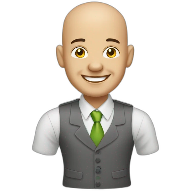 Very stocky businessman in his 40s with light brown skin, pear-shaped face, full cheeks, warm friendly smile, kind welcoming eyes, thick eyebrows, wide nose, short full beard, short dark hair, wearing a black button-up shirt emoji