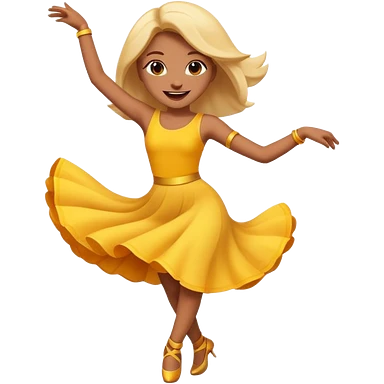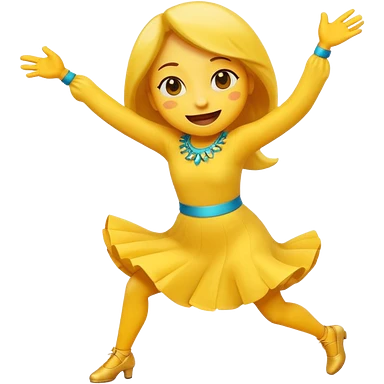 An expressive emoji-style character dancing with lively motion, dynamic pose, joyful energy, and bright, vibrant colors. emoji