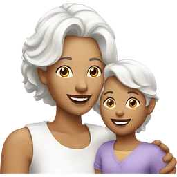 cheerful mom with white hair and white sckin meeting with her daughter emoji