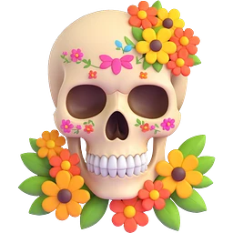 cheerful skull with flowers, visual concept combining happiness and death emoji | AI Emoji Generator