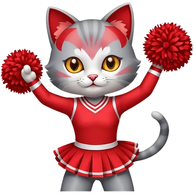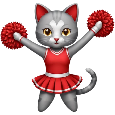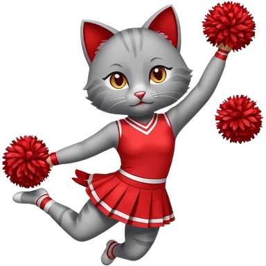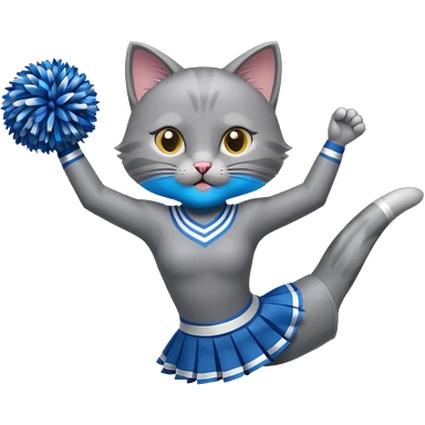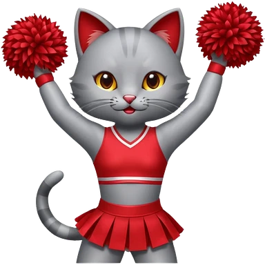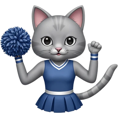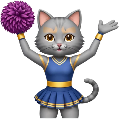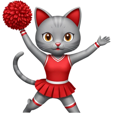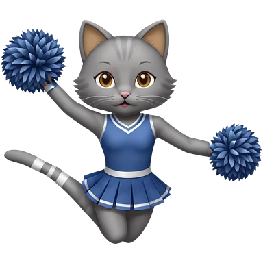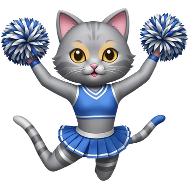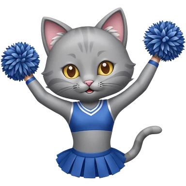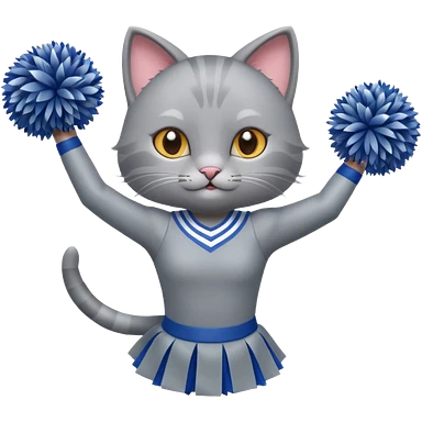 A sleek grey cat cheerleader twirling pom-poms with confident energy. emoji