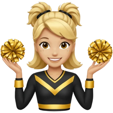 Cheerleader with golden skin tone skin, brown eyes, brown hair and outfit black and gold emoji
