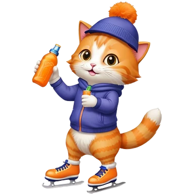 a cat holding a fanta bottle while skating in snow on his phone emoji