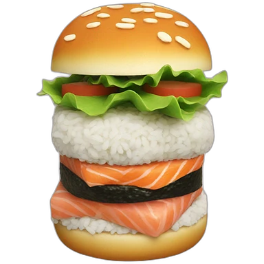 sushi with calamar head inside and burger smashed also inside and also chicken legs also inside emoji