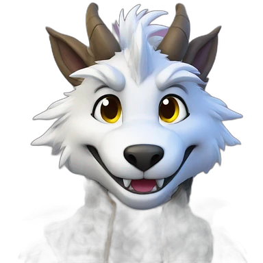 wolf fursuit with brown eyes, white dishdasha, happy expression, right hand visible, emoji style icon emoji
