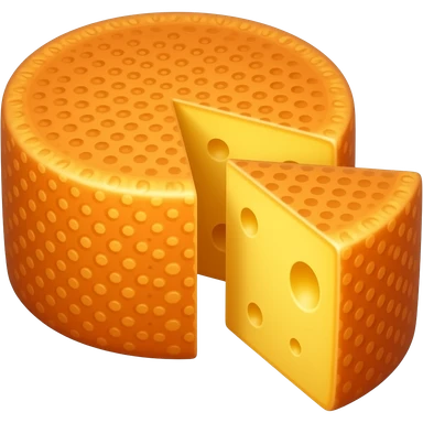 a half vertical wheel of cheese being scraped with a metal spatula, melted cheese flowing, modern emoji style, clean, transparent background emoji
