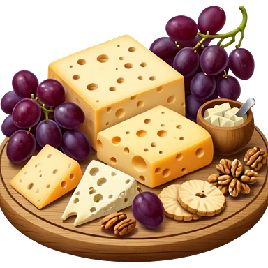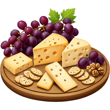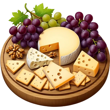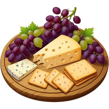Cheese board with wine, red grapes, sausage and biscuit emoji