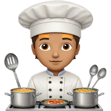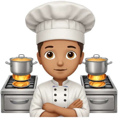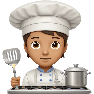 CHEF CON PELO NEGRO Y BARBA NEGRA, OJOS MARRON OSCURO. SONRIE Y TIENE MARCAS DE BESOS emoji
