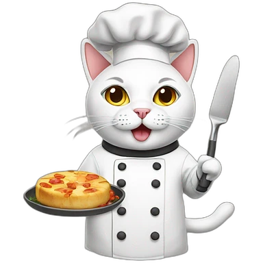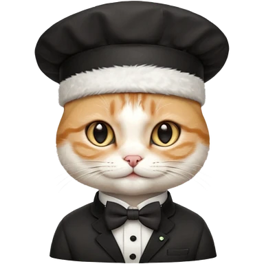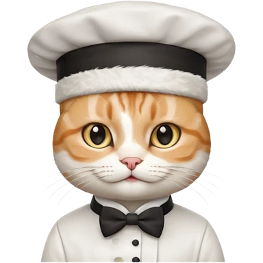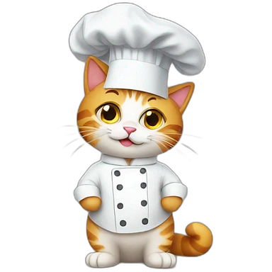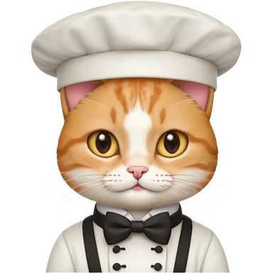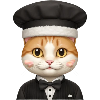 black chef cat wearing a tall white chef hat, burning hat emoji