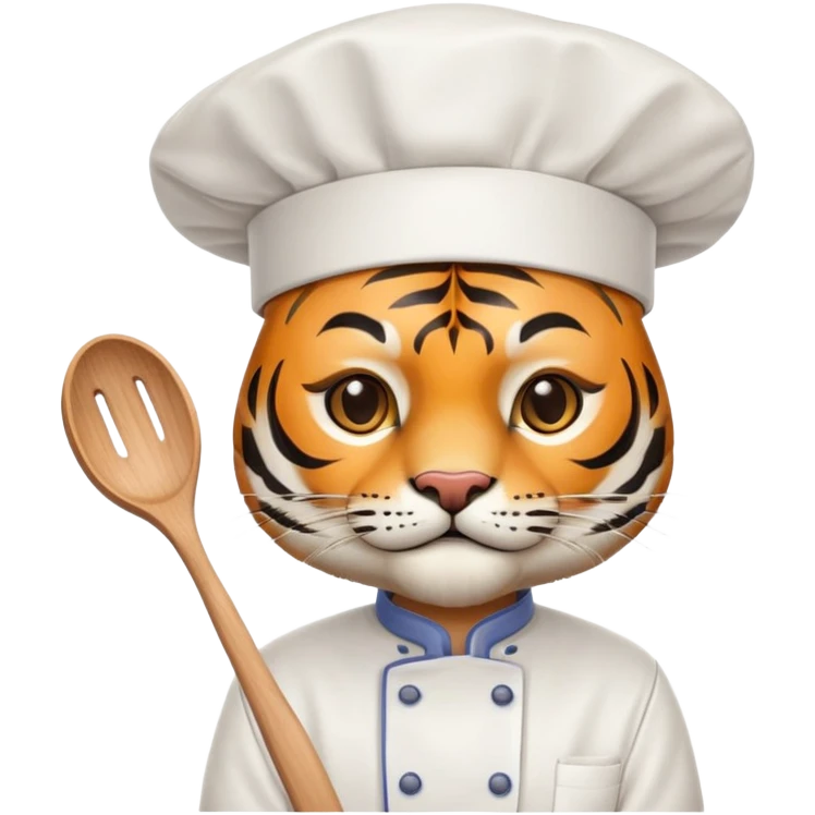 chef tiger face with chef hat and cooking utensils for Twitch emote emoji | AI Emoji Generator