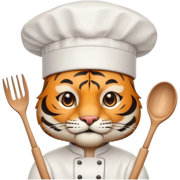 chef tiger face with chef hat and cooking utensils for Twitch emote emoji | AI Emoji Generator