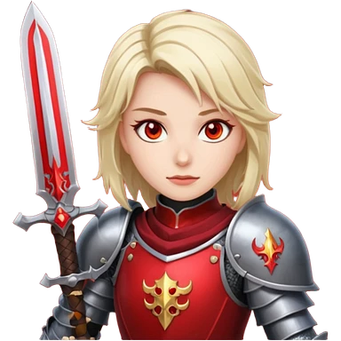 Female knight with crimson armor and blazing red eyes emoji