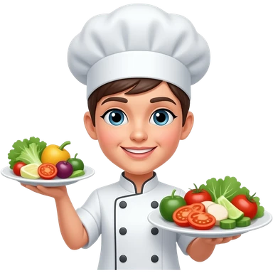 bodybuilder white skin and beard, cooking food with chef hat healty food emoji