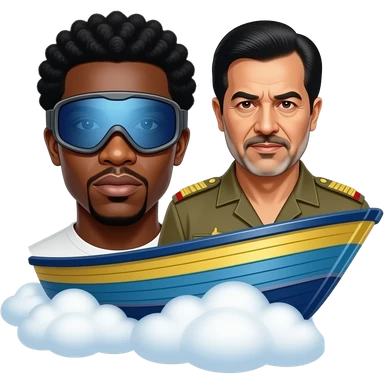 Chief Keef iconic photo with the ski goggles beside saddam Hussein on a boat flying on clouds emoji