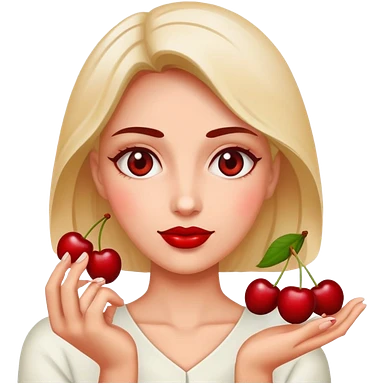 A pair of cherries with diamond gloss dripping halfway across the cherries emoji