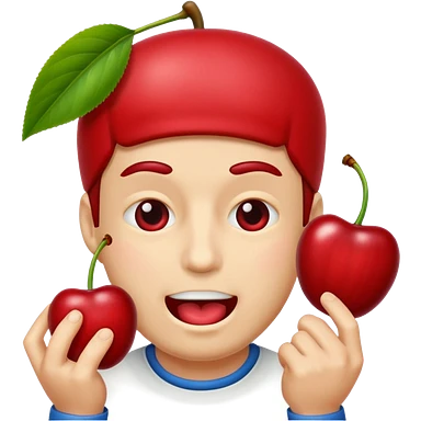 Cherry red on aColorful fruits with glowing antioxidant particles, cell protection, bright clean colors, simple emoji style cup emoji